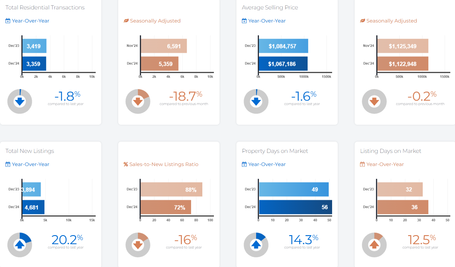 While new listings are up, we’re seeing slight declines in transactions and selling prices, along with longer market times. This shift will present opportunities for buyers and sellers to strategize effectively.